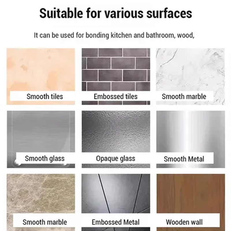 SUITABLE FOR A VARIETY OF SURFACES – This no-nail adhesive works effectively on multiple base materials, such as kitchen and bathroom fixtures, wood, glass, concrete walls, stone, marble, tiles, PVC, and more. One powerful adhesive for all your household bonding needs.